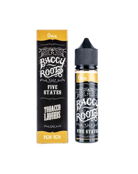 Five States Shortfill E-liquid by Baccy Roots is a powerful and bold blend of cuban tobacco, dark chocolate and butterscotch with hints of brazil nut. A deep and earthy taste of tobacco, met with bittersweet dark chocolate and smooth butterscotch sauce. Supplied in a 60ml bottle filled with 50ml flavoured e-liquid, leaving space for a 10ml nic shot.