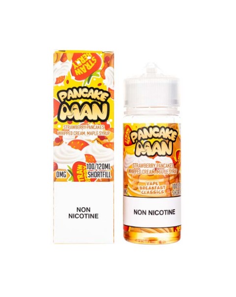 Vape Breakfast Classics bring you Pancake Man, a serving of a soft fluffy pancake, topped with fresh strawberries, cream and a drizzle of maple syrup. A true treat, a fresh fruity inhale is followed by a smooth yet rich exhale.. Supplied in a large 120ml bottle, filled with 100ml zero nicotine e-liquid.