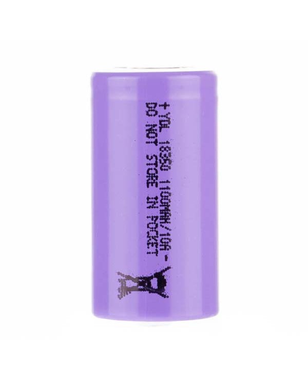 The YDL is an 18350 sized battery cell with a 1100mAh capacity and a 10A continuous discharge rate. The YDL 18350 battery is a great choice for compact regulated box mods compatible with 18350 sized c..